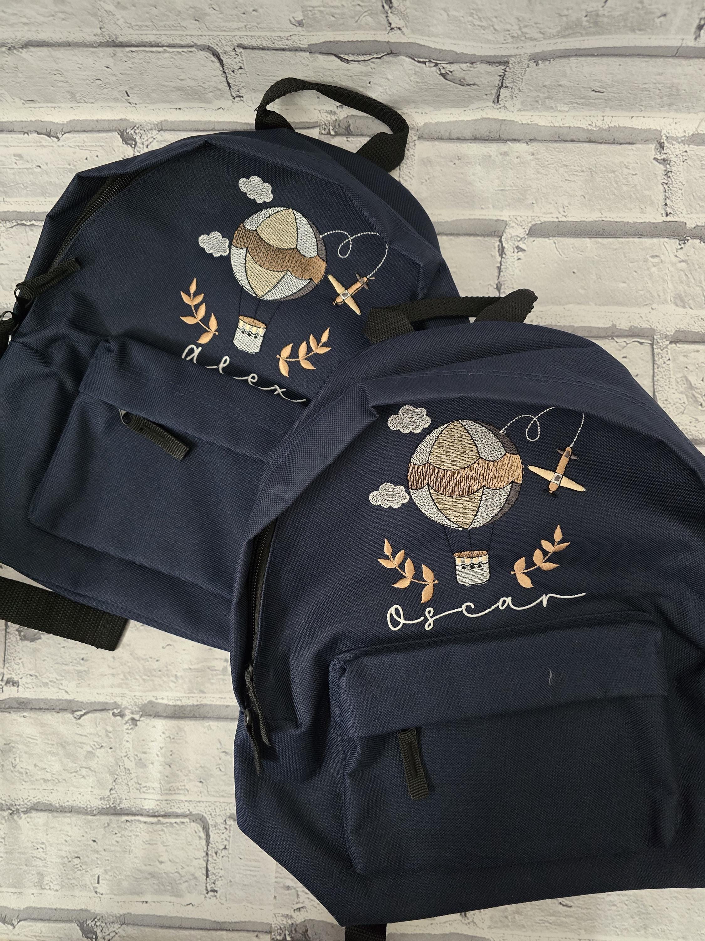 This hot air balloon design is a sketch design which means the stitches are not dense so you may be able to see some of the bag colour underneath.
